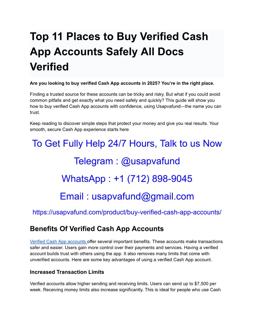 Top 11 Places to Buy Verified Cash App Accounts Safely All Docs Verified