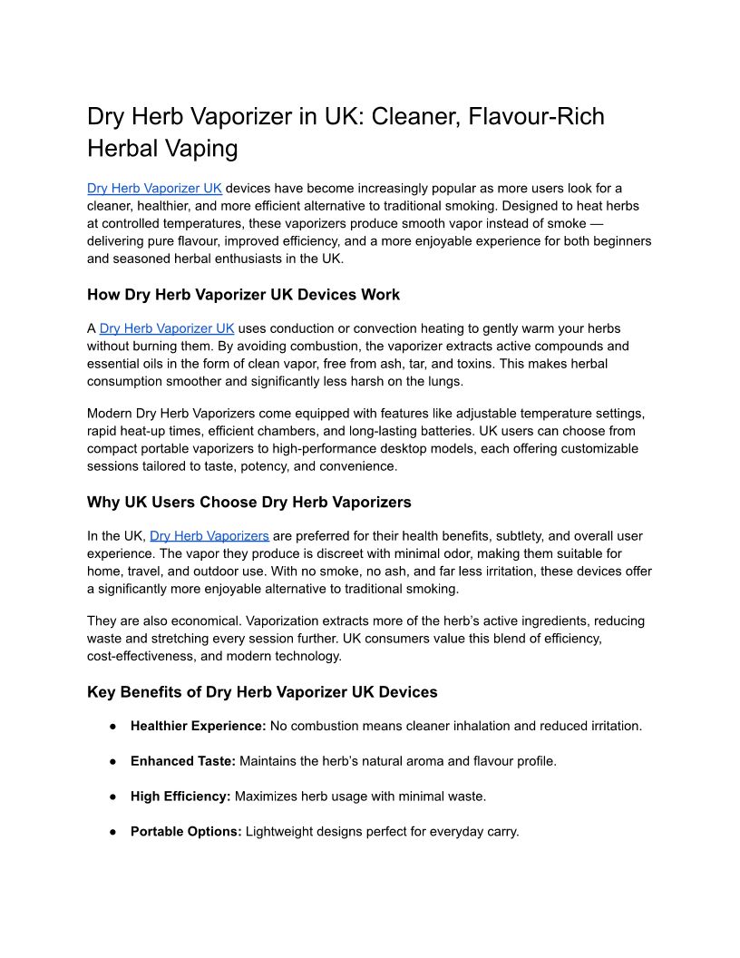 Dry Herb Vaporizer in UK: Cleaner, Flavour-Rich Herbal Vaping