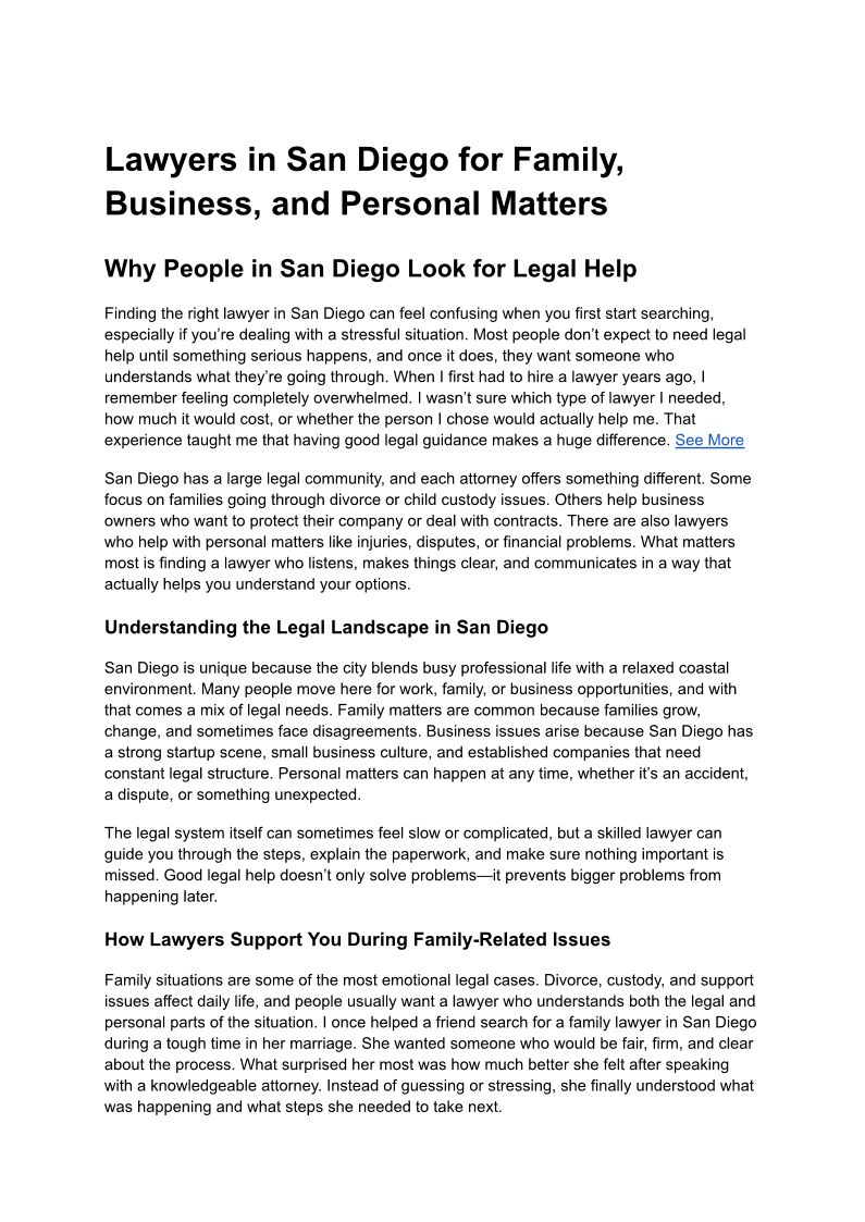 Lawyers in San Diego for Family, Business, and Personal Matters