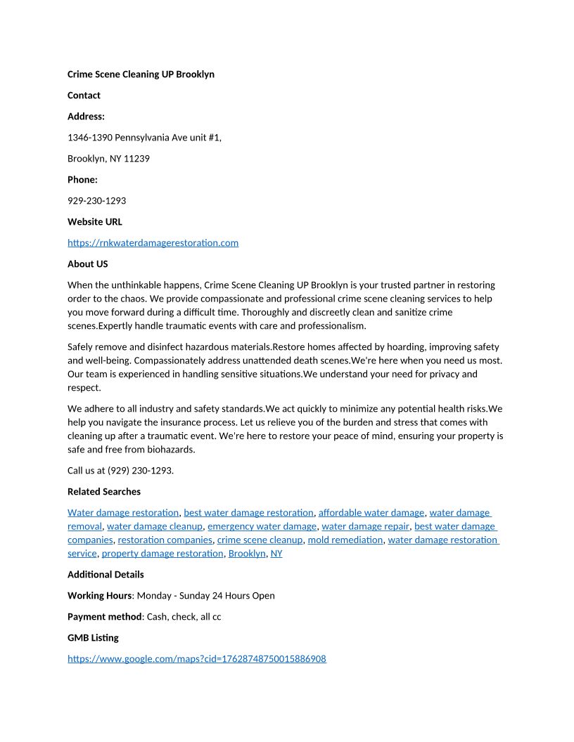 Crime Scene Cleaning UP Brooklyn-1346-1390 Pennsylvania Ave, unit #1, Brooklyn, NY 11239