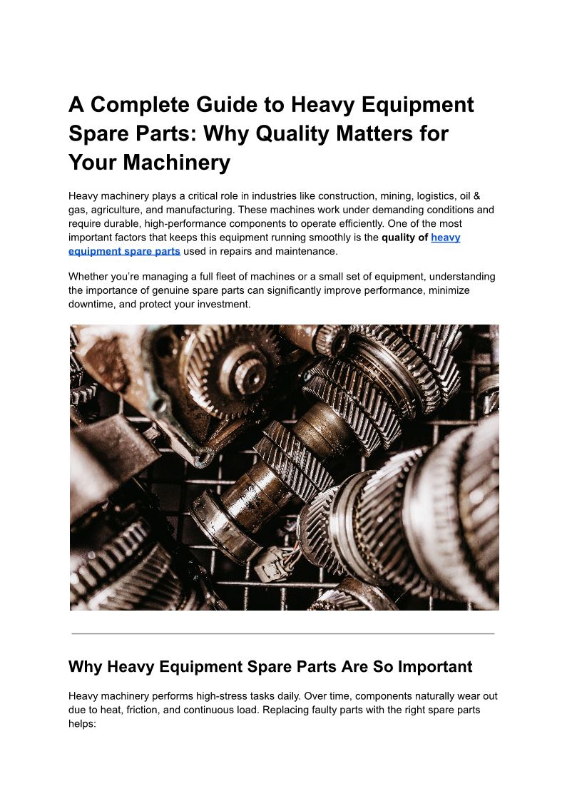 A Complete Guide to Heavy Equipment Spare Parts_ Why Quality Matters for Your Machinery