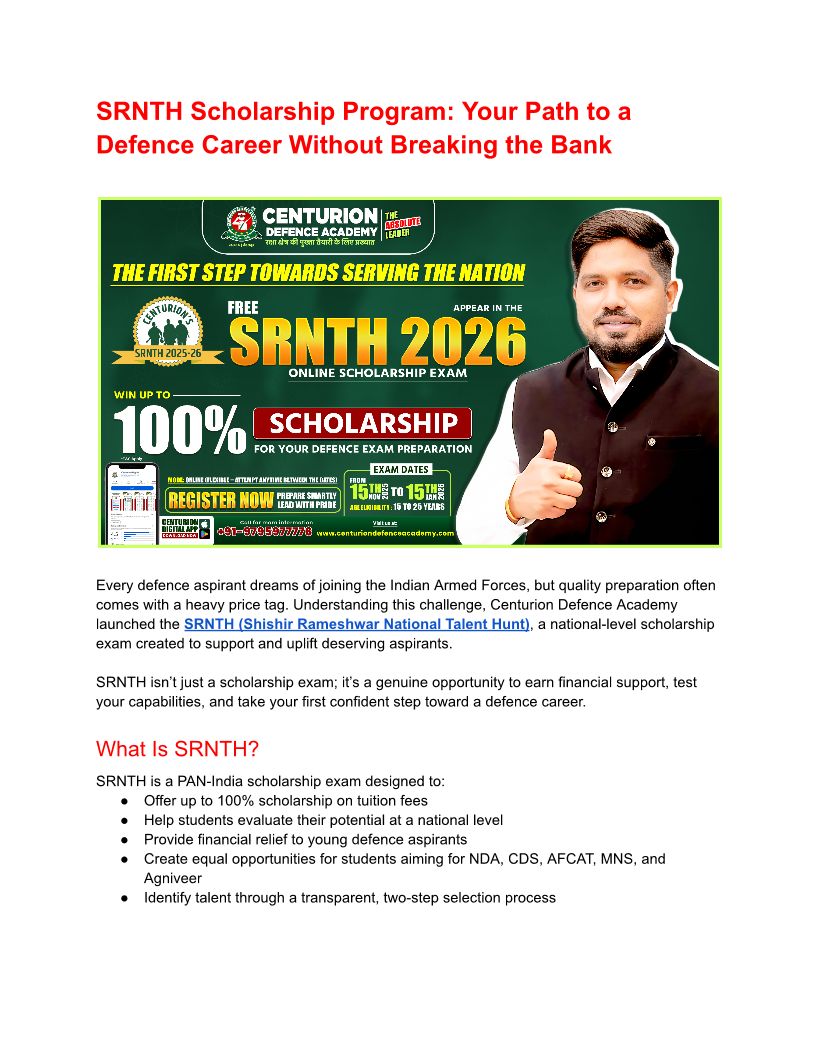 SRNTH Scholarship Program_ Your Path to a Defence Career Without Breaking the Bank