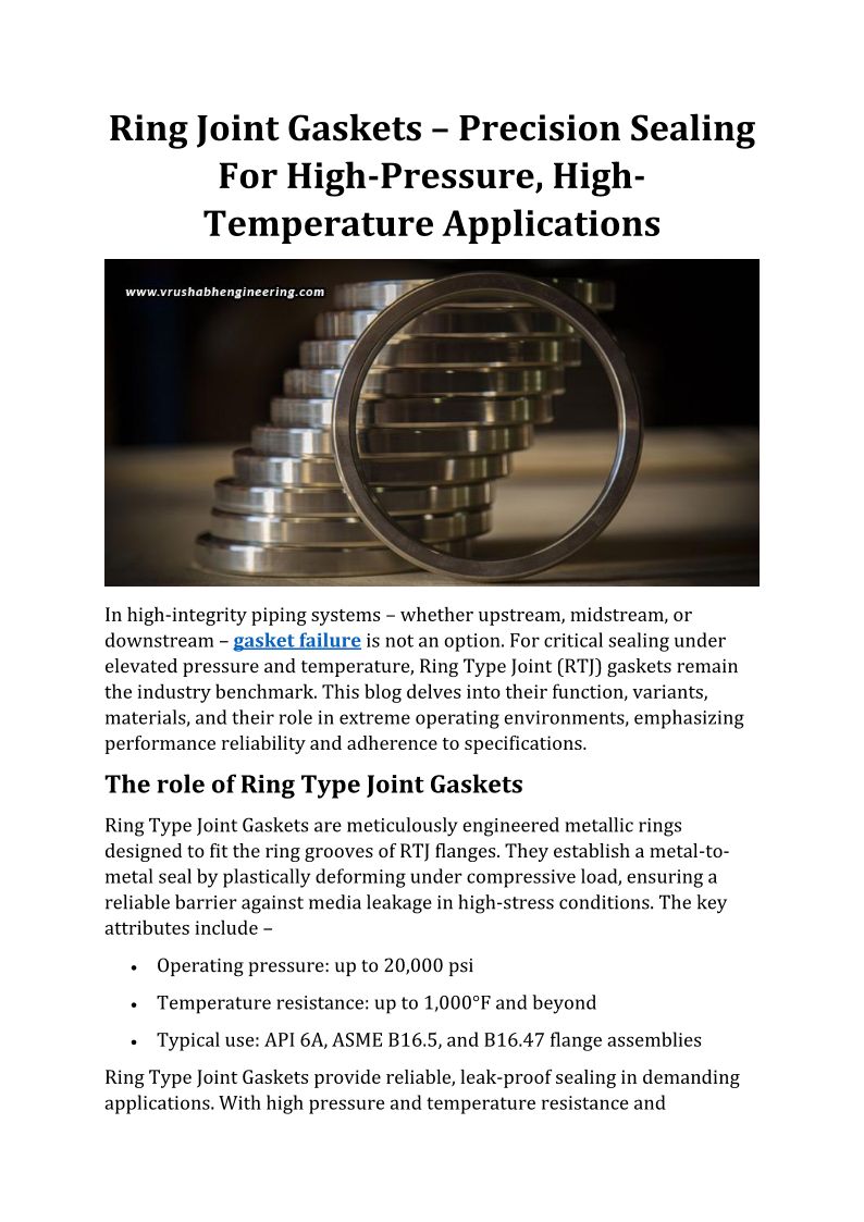 Ring Joint Gaskets – Precision Sealing For High-Pressure, High-Temperature Applications