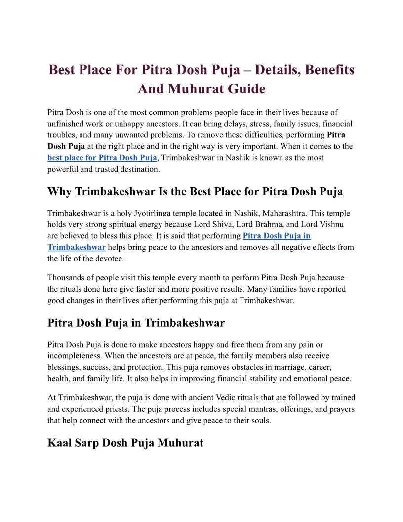 Best Place For Pitra Dosh Puja – Details, Benefits And Muhurat Guide