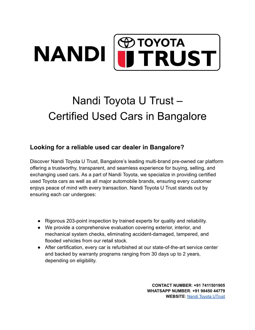 Buy and Sell Certified Used Cars in Bangalore | Nandi UTrust