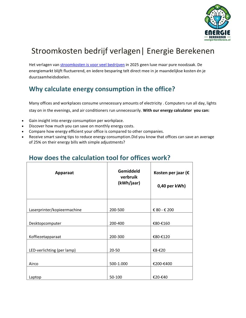 stroomkosten bedrijf verlagen| Energie Berekenen