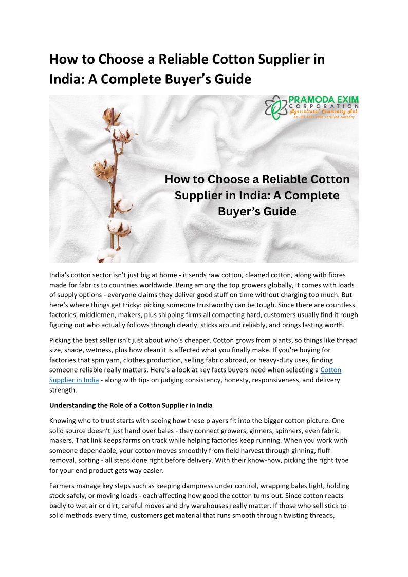 How to Choose a Reliable Cotton Supplier in India