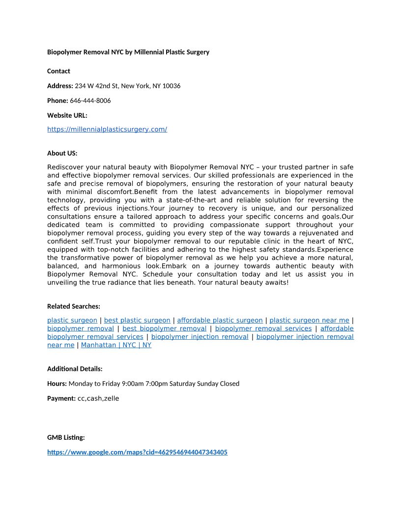 Biopolymer Removal NYC by Millennial Plastic Surgery