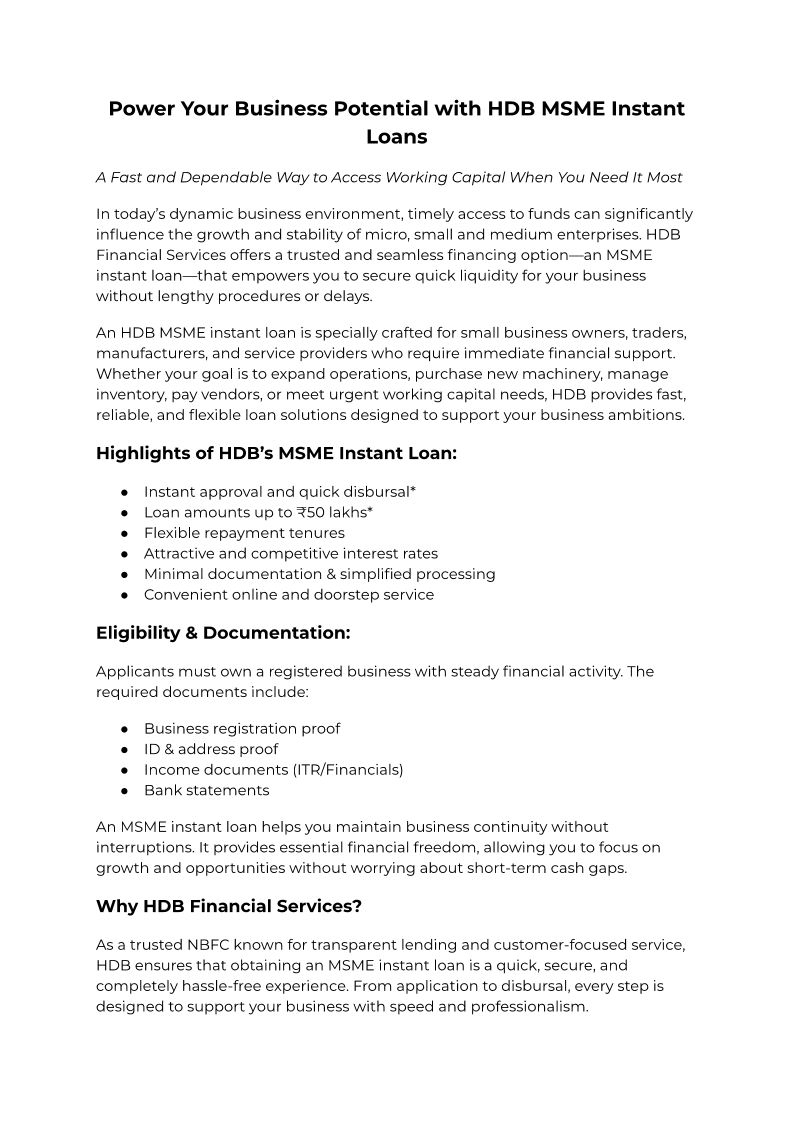 Power Your Business Potential with HDB MSME Instant Loans