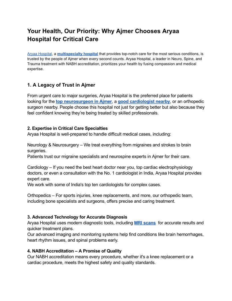 Your Health, Our Priority: Why Ajmer Chooses Aryaa Hospital for Critical Care