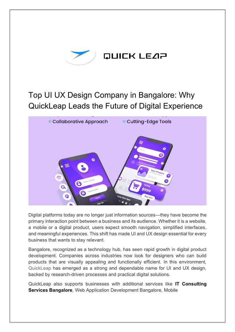 Top UI UX Design Company in Bangalore Why QuickLeap Leads the Future of Digital Experience