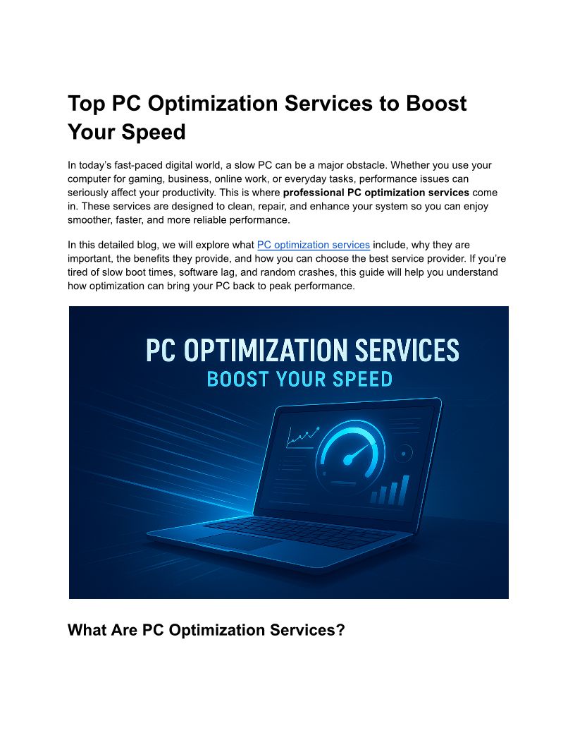 Top PC Optimization Services to Boost Your Speed
