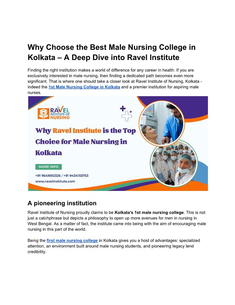 Why Choose the Best Male Nursing College in Kolkata – A Deep Dive into Ravel Institute