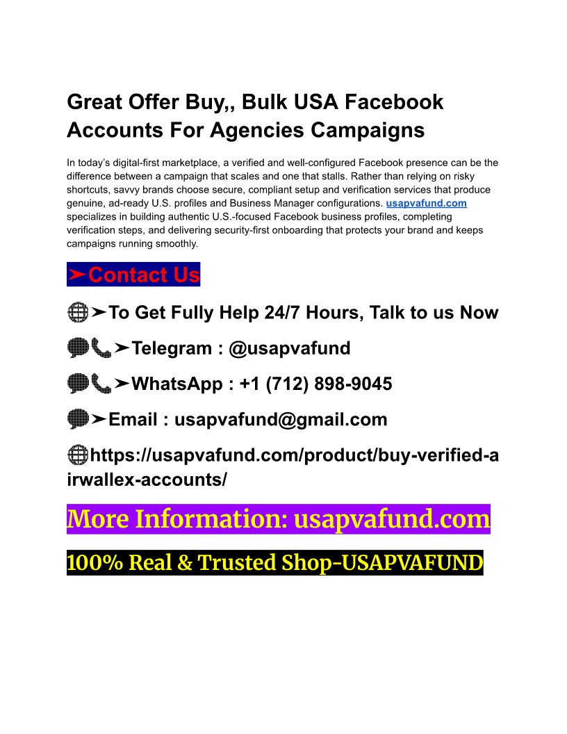 Great Offer Buy,, Bulk USA Facebook Accounts For Agencies Campaigns