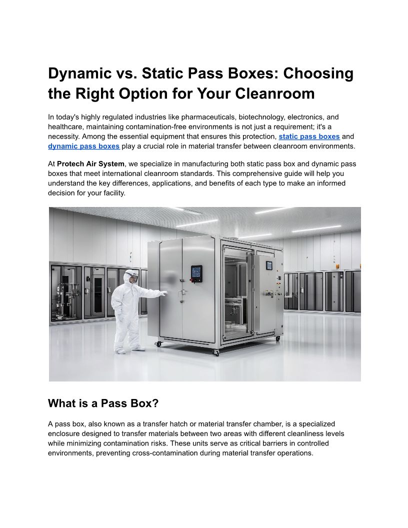 Dynamic vs Static Pass Box: Complete Guide | Protech Air