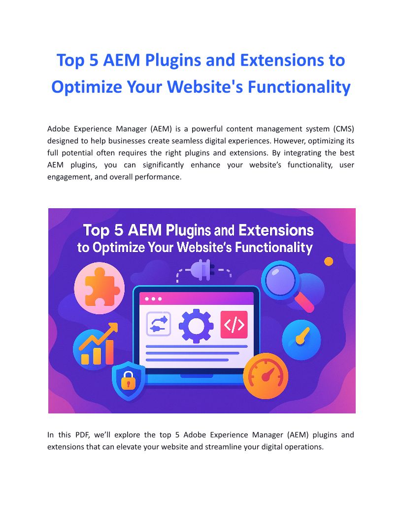Top 5 AEM Plugins and Extensions to Optimize Your Website's Functionality