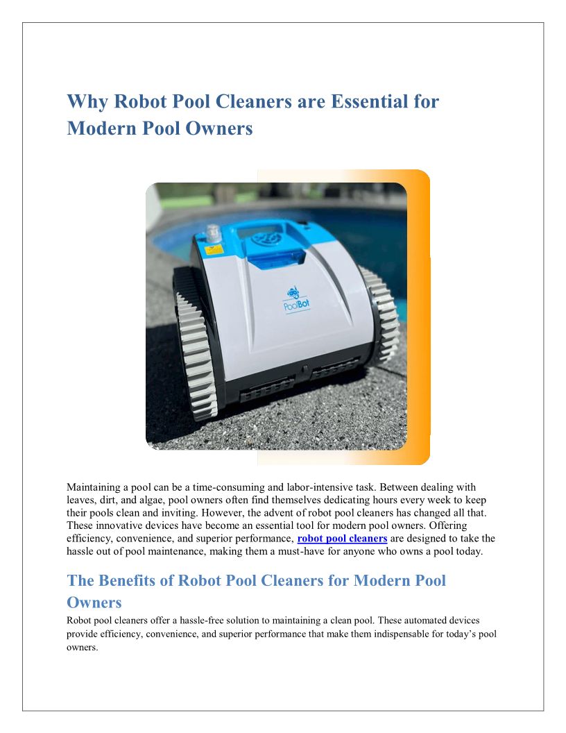 The Essential Benefits of Robot Pool Cleaners for Pool Owners