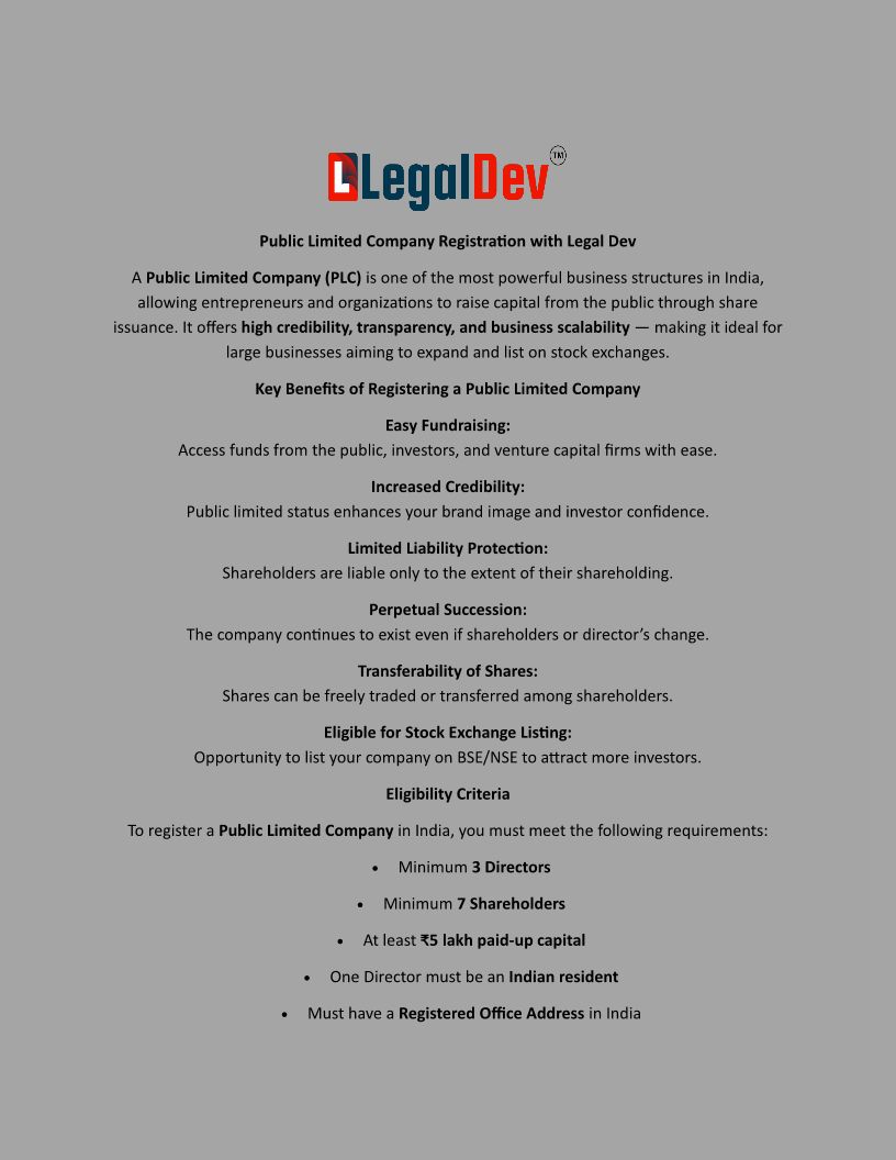 Best Public Limited Company Registration Process provider in India