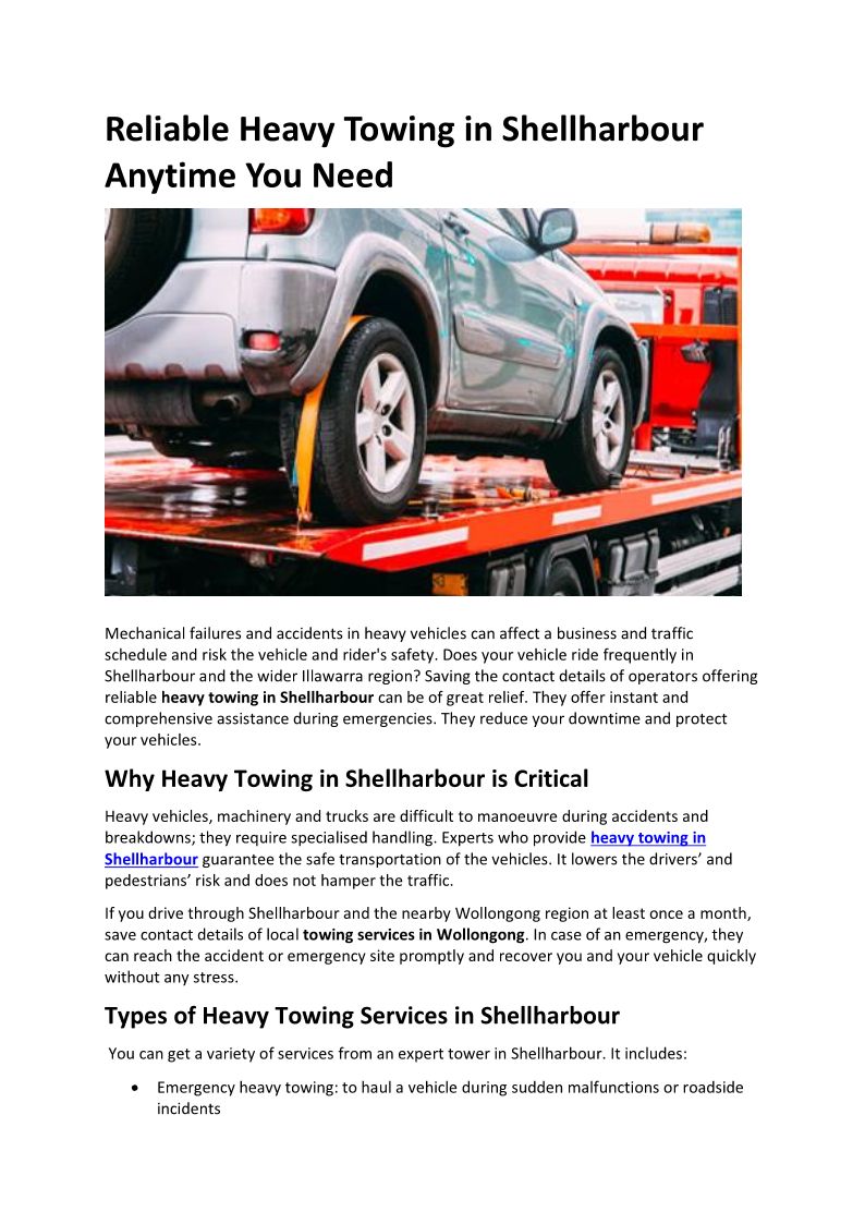 Reliable Heavy Towing in Shellharbour by JW Fairalls
