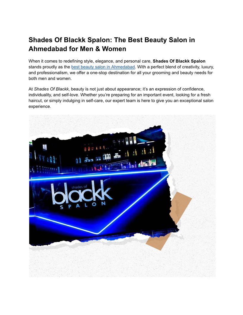 Shades Of Blackk Spalon: The Best Beauty Salon in Ahmedabad for Men & Women