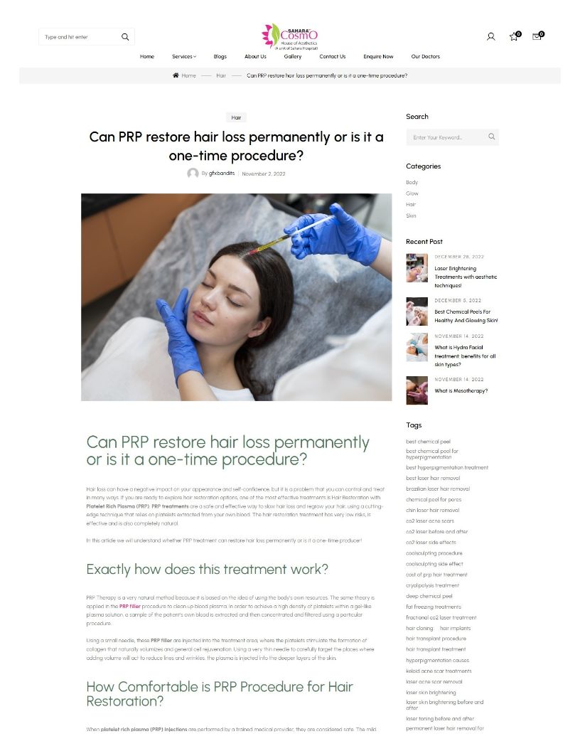 Can Platelet rich plasma (PRP) restore hair loss | Saharacosmo