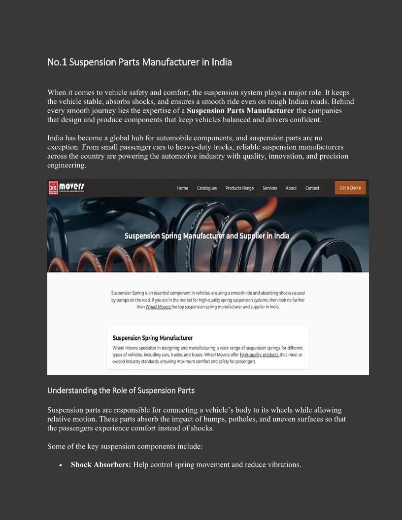 Why Suspension Parts Manufacturers Are Vital for Automotive Stability
