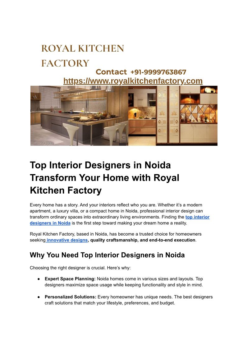 Top Interior Designers in Noida | Royal Kitchen Factory