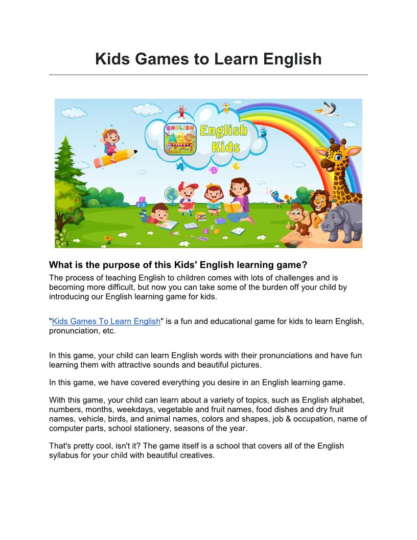 Kids Games to Learn English - English Learning Game For Kids