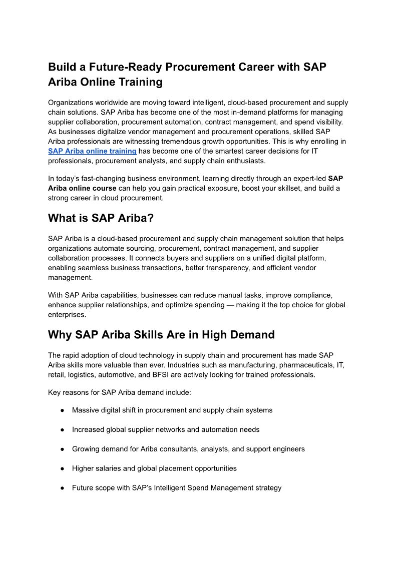 Build a Future-Ready Procurement Career with SAP Ariba Online Training