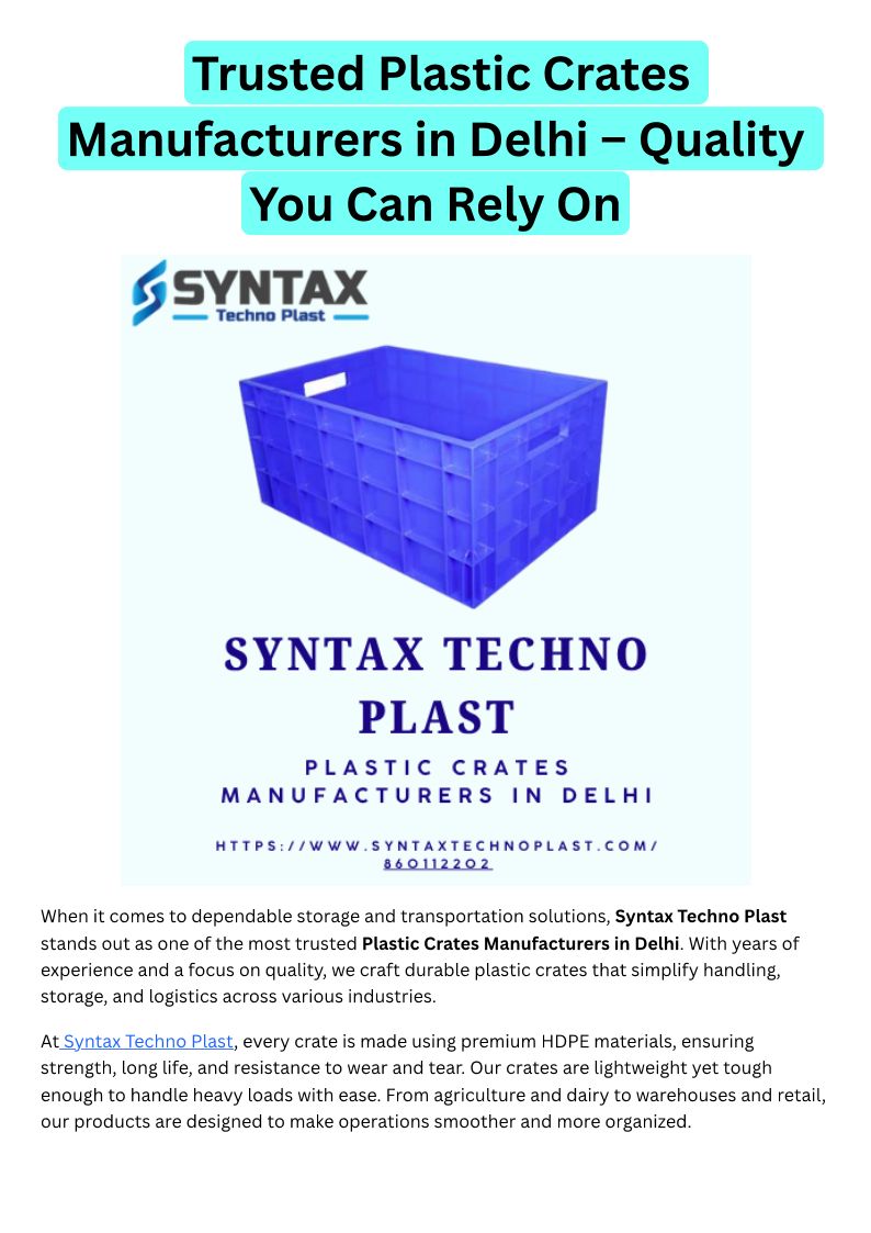 Trusted Plastic Crates Manufacturers in Delhi – Quality You Can Rely On