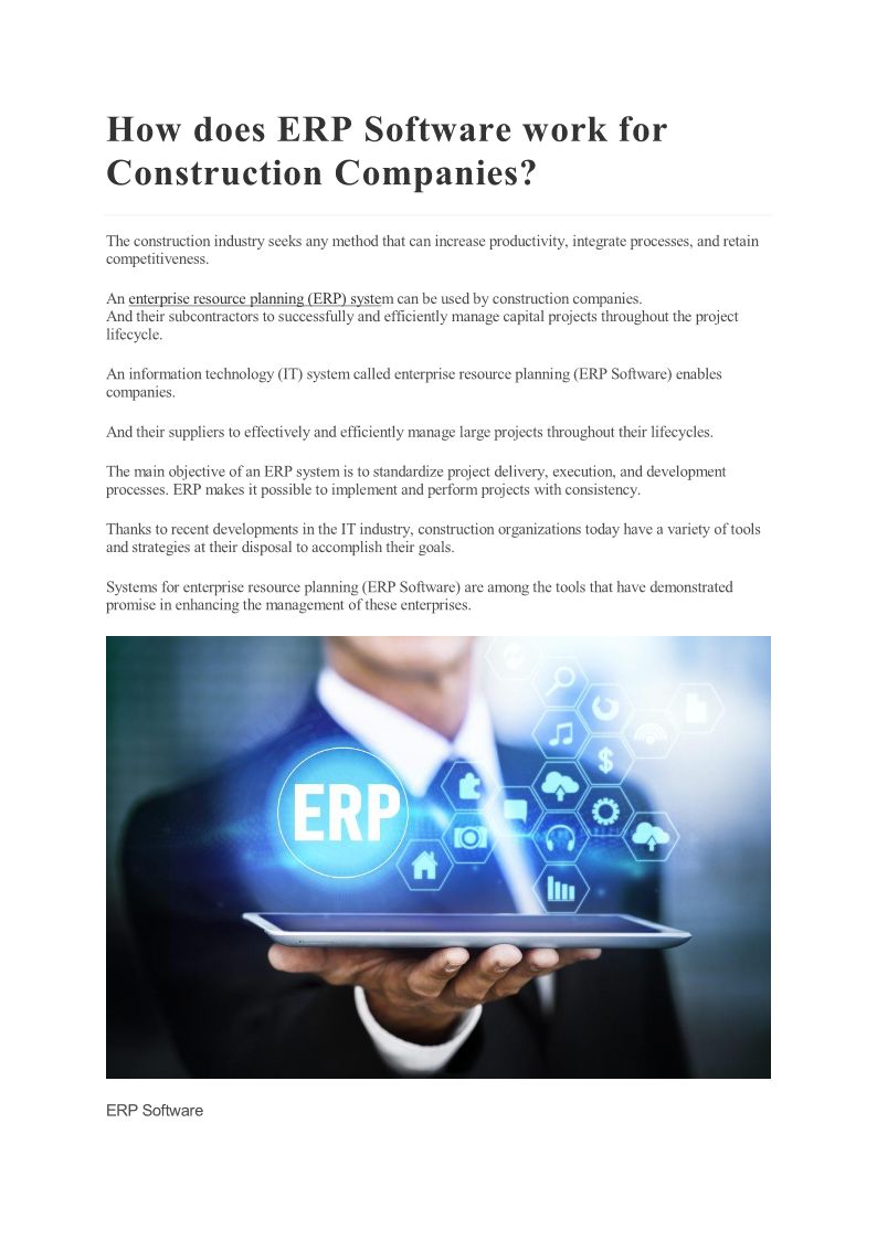 How does ERP Software work for Construction Companies