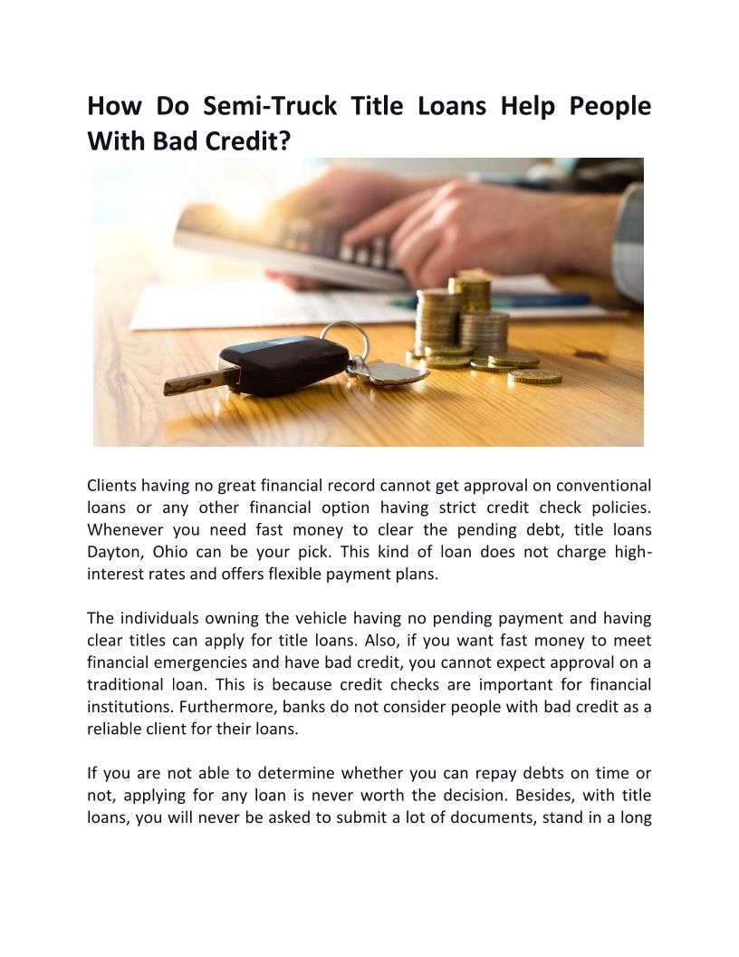 How Do Semi-Truck Title Loans Help People With Bad Credit