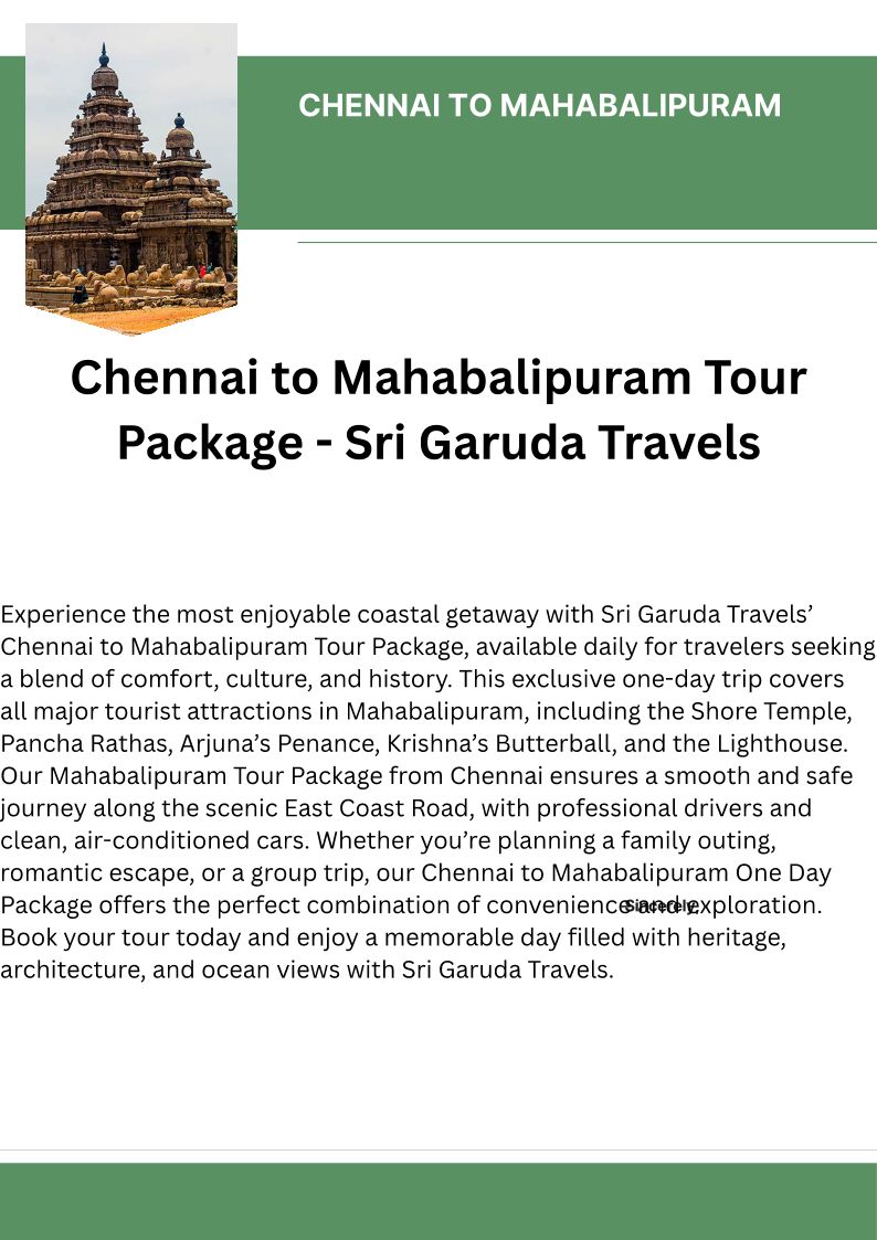 Chennai to Mahabalipuram Tour Package - Sri Garuda Travels