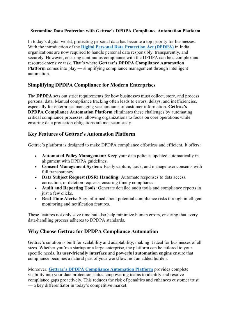 Streamline Data Protection with Gettrac’s DPDPA Compliance Automation Platform