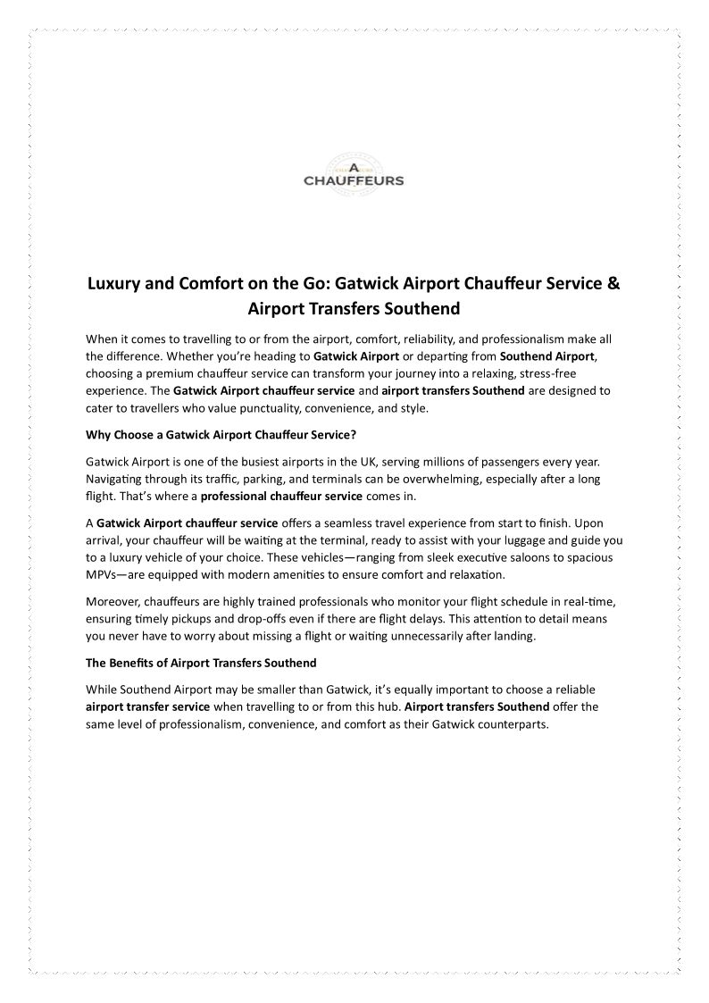 Luxury and Comfort on the Go Gatwick Airport Chauffeur Service & Airport Transfers Southend (1)