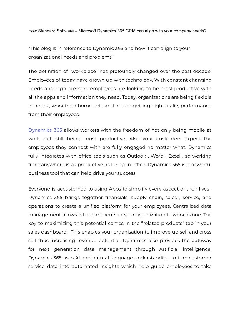 How Standard Software – Microsoft Dynamics 365 CRM can align with your company needs