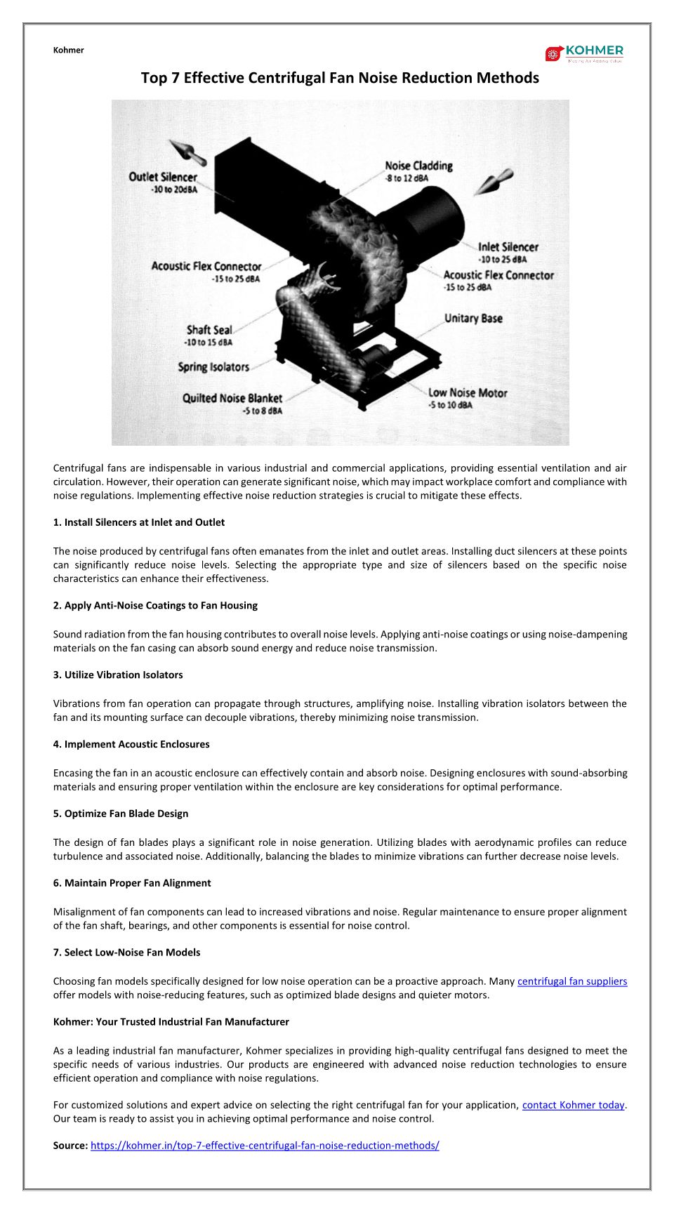 Top 7 Effective Centrifugal Fan Noise Reduction Methods