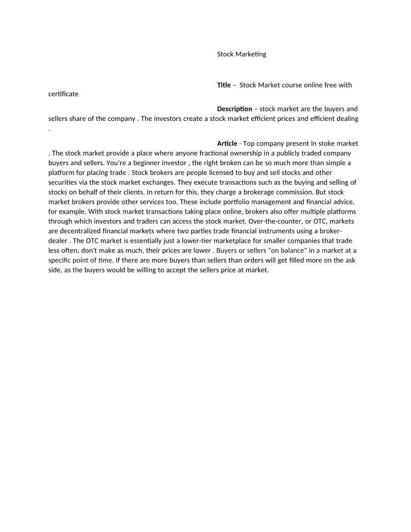 Stock Market course online free with certificate