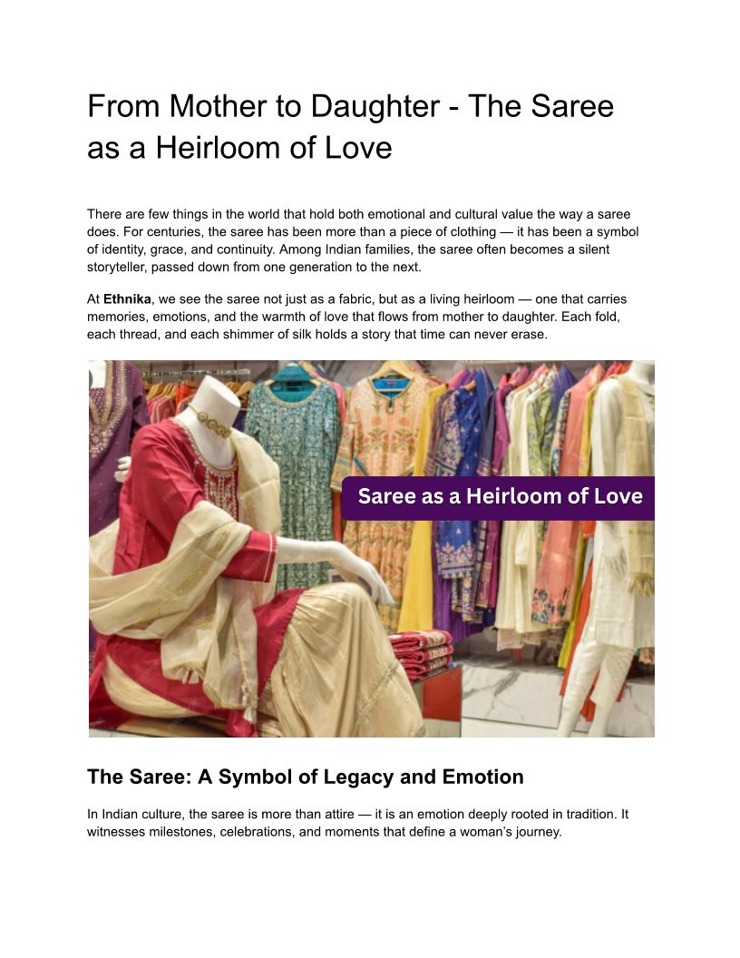 From Mother to Daughter - The Saree as a Heirloom of Love