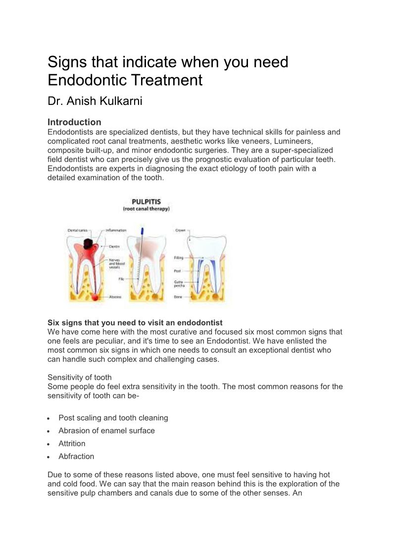 Signs that indicate when you need Endodontic Treatment