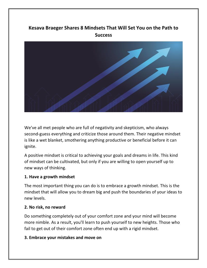 Kesava Braeger Shares 8 Mindsets That Will Set You on the Path to Success