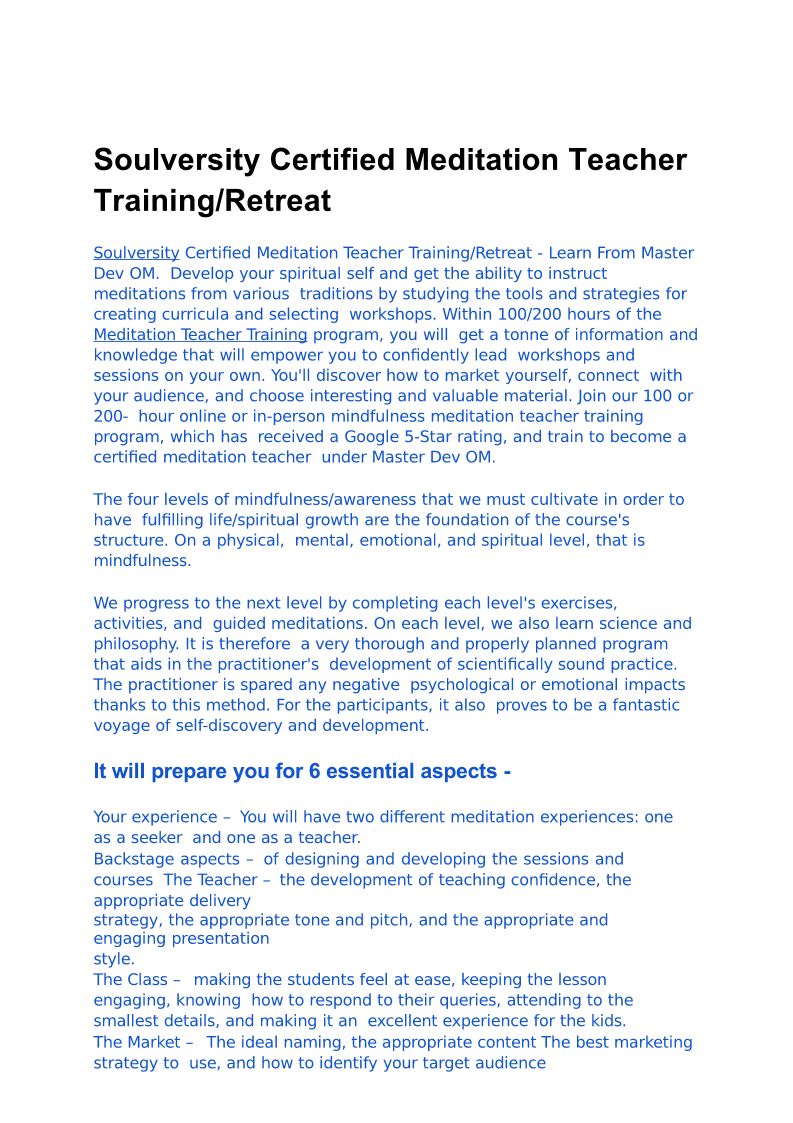 Soulversity Certified Meditation Teacher Training/Retreat