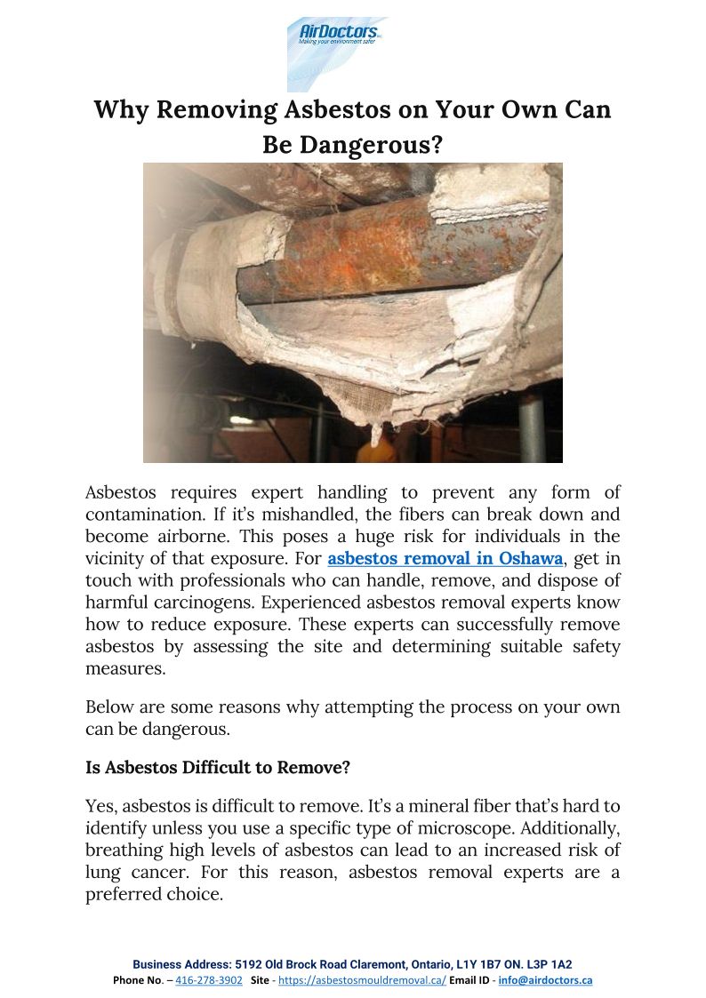 Why Removing Asbestos on Your Own Can Be Dangerous?