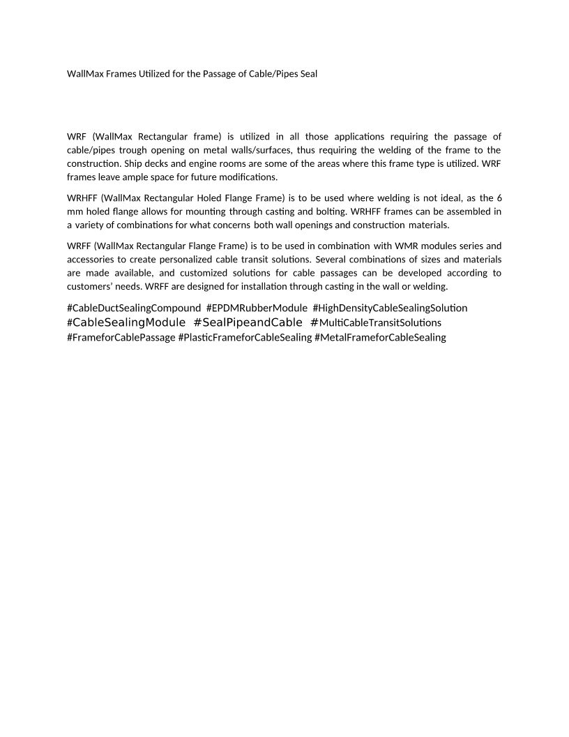 WallMax Frames Utilized for the Passage of Cable/Pipes Seal