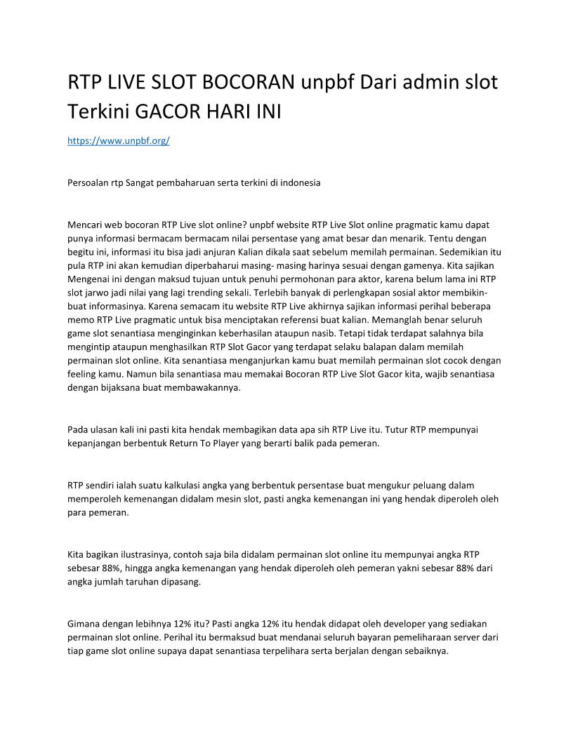 RTP LIVE SLOT BOCORAN unpbf Dari admin slot Terkini GACOR HARI INI