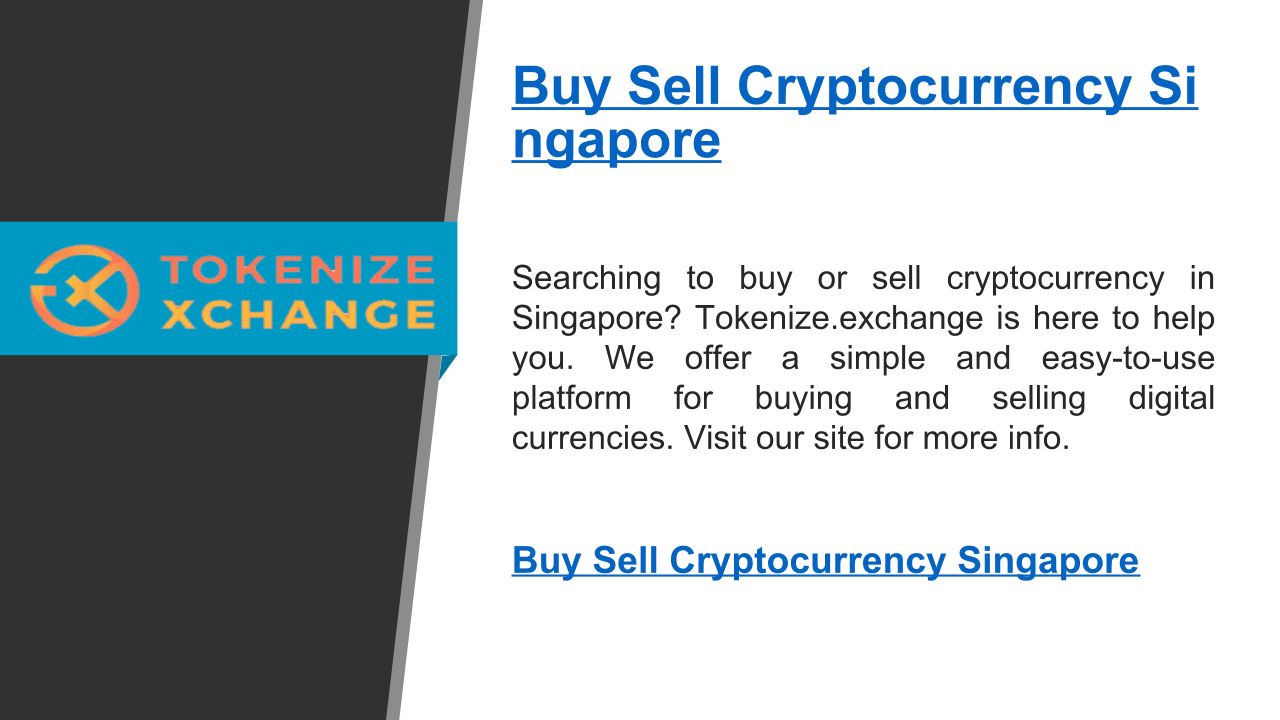 Buy Sell Cryptocurrency Singapore Tokenize.exchange