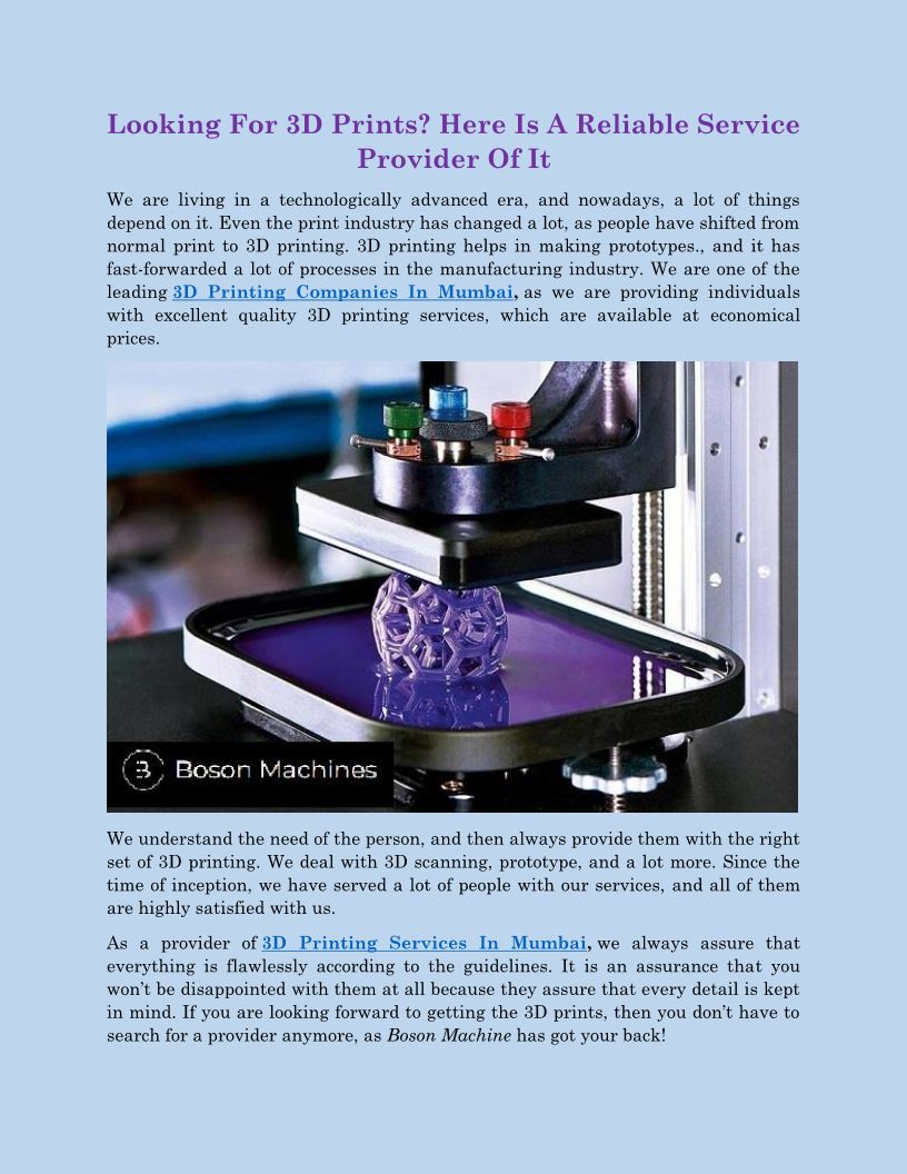 3D Printing Services In Mumbai - bosonmachines