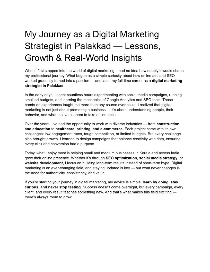 My Journey as a Digital Marketing Strategist in Palakkad — Lessons, Growth & Real-World Insights