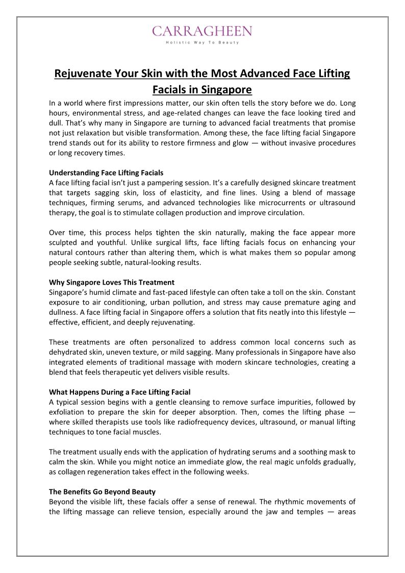 Rejuvenate Your Skin with the Most Advanced Face Lifting Facials in Singapore