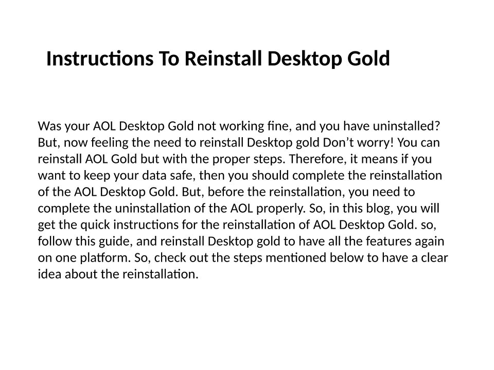 Unable to Download,Install and Reinstall AOL Desktop Gold ppt